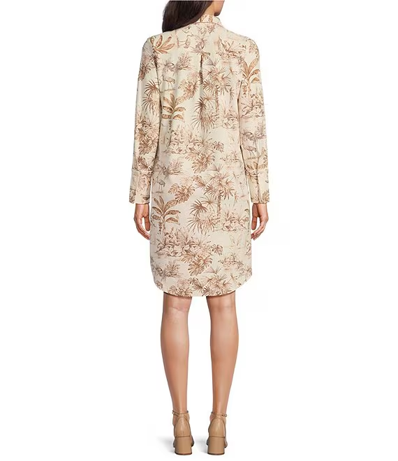 Knit Cloth Printed Split V-Neck Long Sleeve Dress
