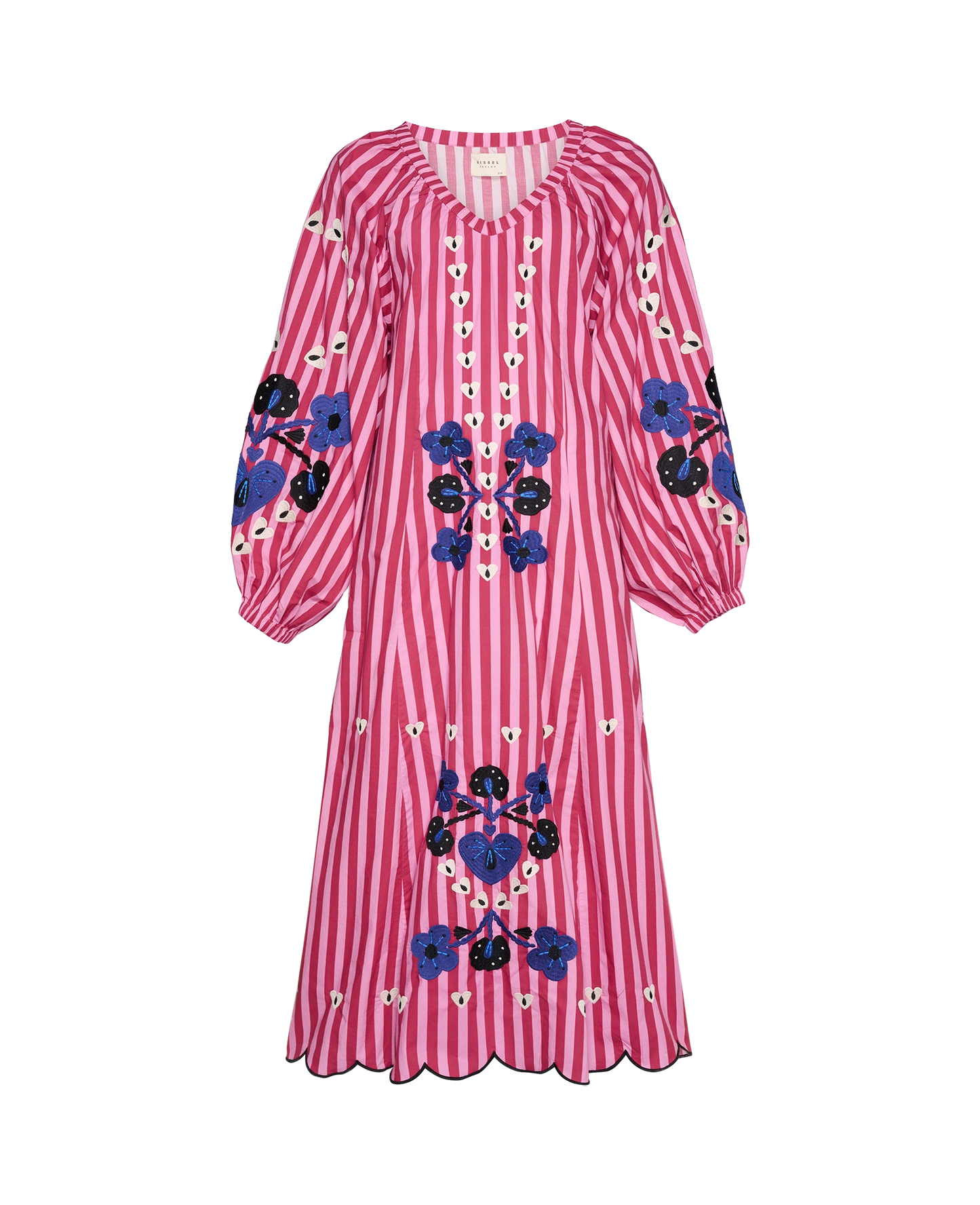 Long Sleeves Embroidery Printed Stripes Maxi Dress