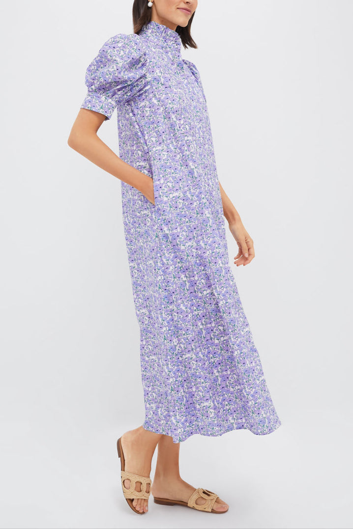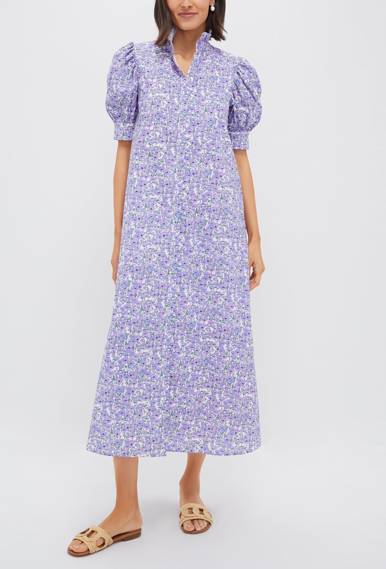 Purple Poppies Ruffle Collar Cotton Maxi Dress